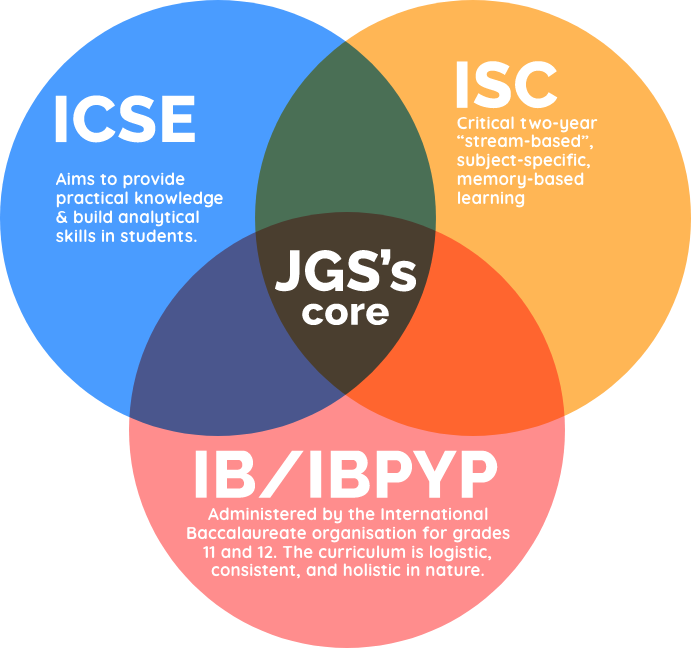 The ISC curriculum is designed to improve oral and writing skills, along with in-depth learning of various concepts, which focuses on the overall development of students. A critical two-year “stream-based”, subject-specific, competency-based teaching and learning and assessment programme which is offered by the Council for the Indian School Certificate Examination. The ISC curriculum places a lot of importance on English literature & language along with elective subjects. It is very systematic; disciplined & the difficulty level of the subjects is equally distributed in exams. At JGS, the ISC curriculum is offered to students of classes XI & XII with English as the medium of instruction in the following streams,